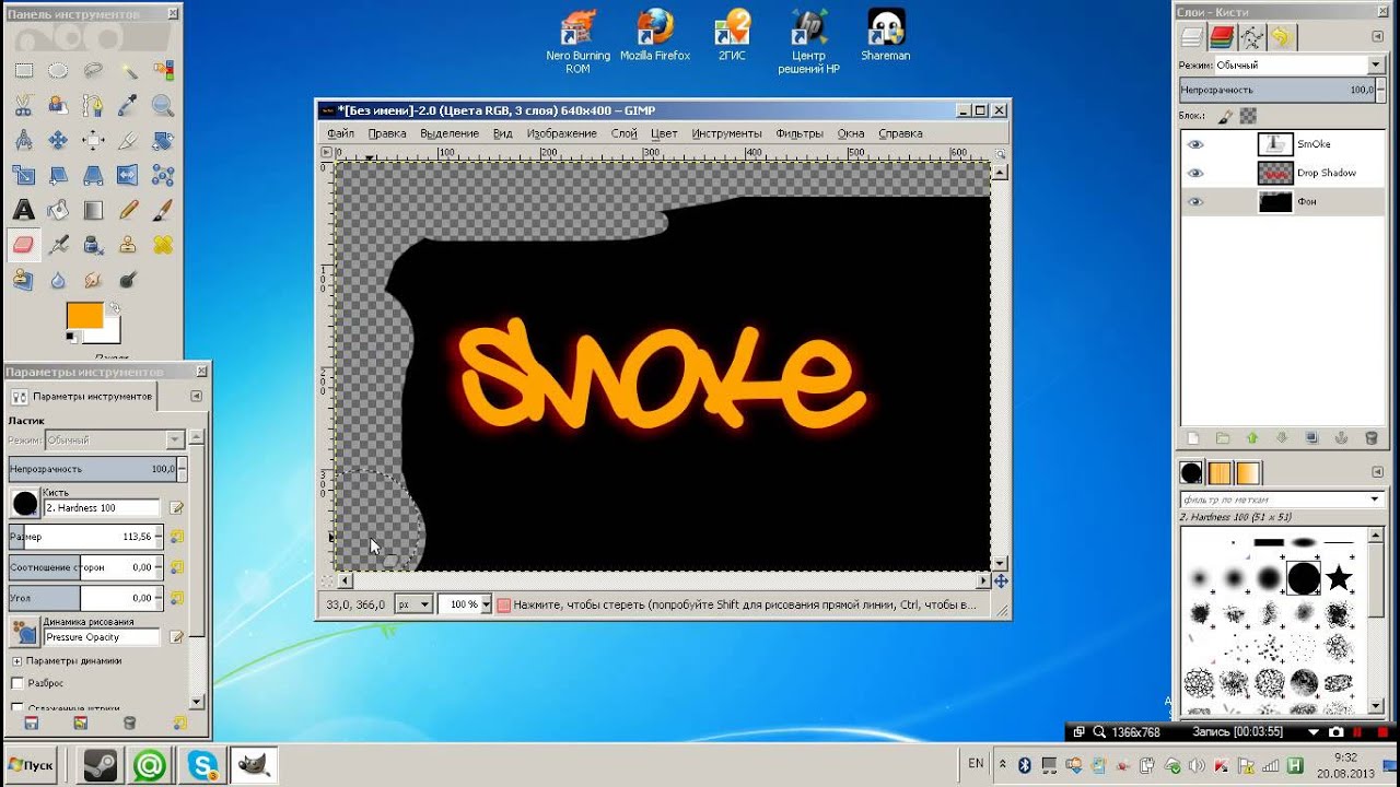 Выберите , на панели параметров установите значение Непрозрачность отличное от 100%. Затем стирайте участки изображения, находящиеся в выделенной области. Воздействие инструмента будет только к тем пикселям, что вы выделили.