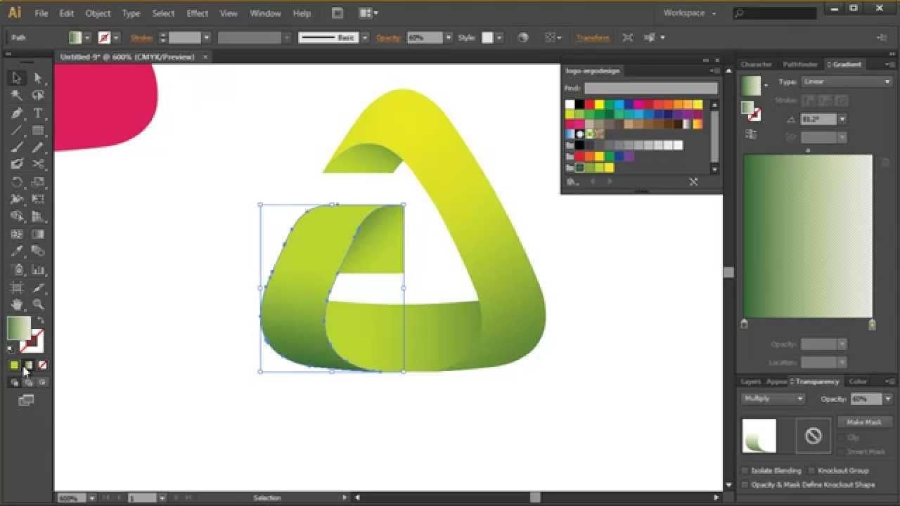 Градиенты все еще находятся на тренде в дизайне логотипа, поэтому добавьте один в свой логотип Создайте новый градиент в раскрывающемся меню «Заполнение» слева от панели параметров. В окне градиента дважды щелкните нижние ползунки, чтобы открыть параметры RGB, где вы можете выбрать цвета; Я пошел на свет и темно-синий. Затем примените этот градиент для обоих объектов, изменяя вращение градиента, чтобы они противостояли друг другу. Если вы не можете видеть параметры заполнения, это может быть, потому что у вас может быть выбранный инструмент Move, поэтому переключитесь на ручку или инструмент формы.