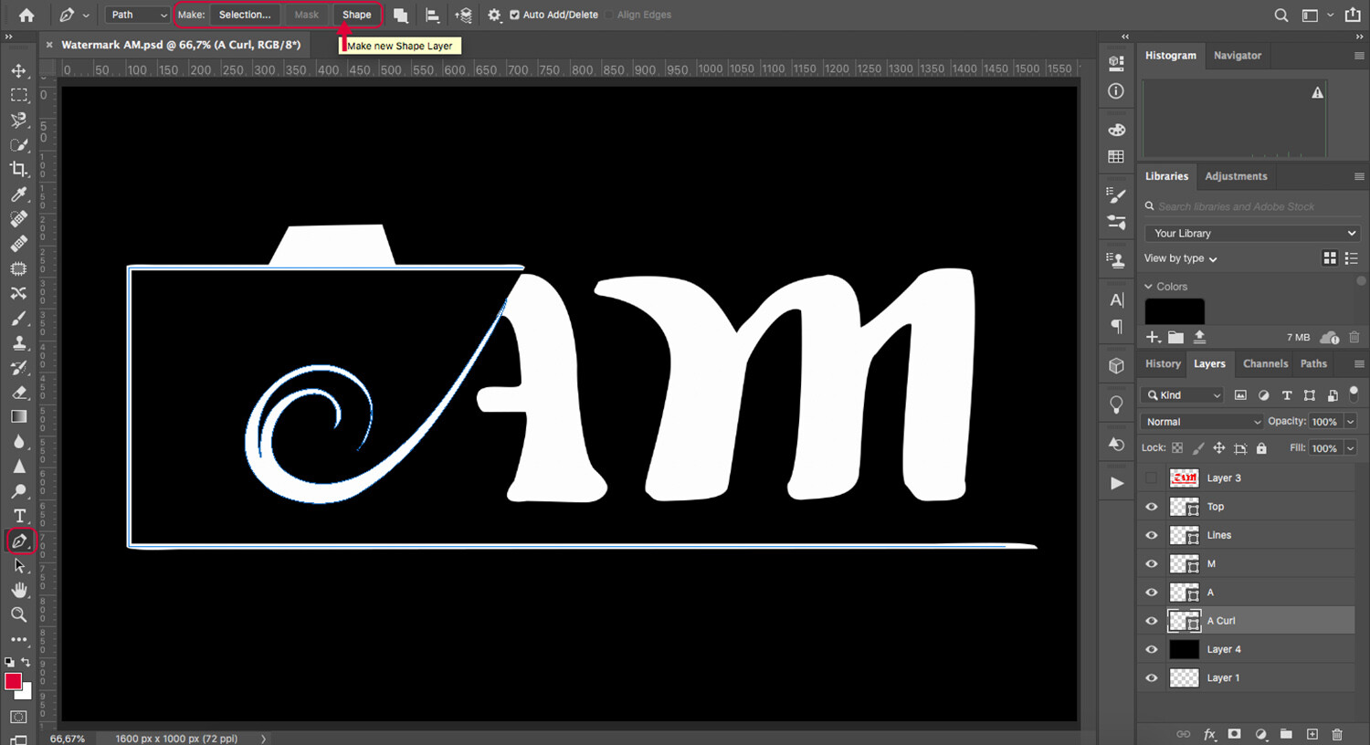 Дублируйте свой слой, чтобы вы могли редактировать форму Дублируйте слой, нажав CMD +.