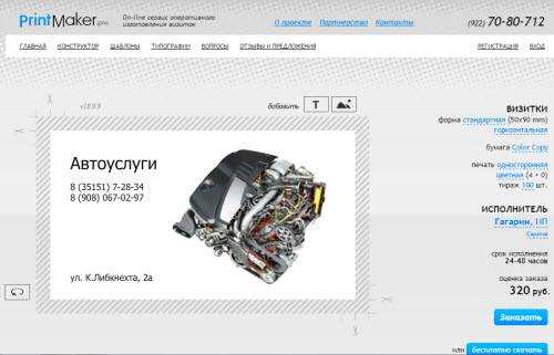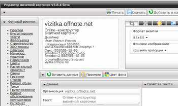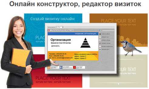 www.vizit-ka.ru – еще один простой конструктор визиток онлайн. Имеется каталог стандартных изображений, также вы можете загрузить фоновое изображение в генератор. Скачать готовый макет можно в pdf.