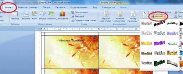 Делаем визитки в ворде. Вставляем фигуру Надпись
