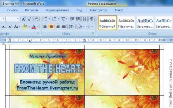 Делаем визитки в ворде. копируем визитку по ячейкам