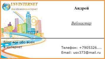 Вот такая визитка получилась у меня, на которую я потратил не более 5 минут.