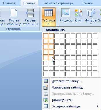 - Так как печатать мы будем на листе А4 (напомню, что размеры листа 210 x 297 мм), а размеры стандартной визитки составляют 9 x 5 мм, то путем несложных вычислений, получаем, что ширину листа войдет 2 виитки, а в высоту – 5. Значить создаем таблицу, состоящую из 2 столбиков и 5 строк:
