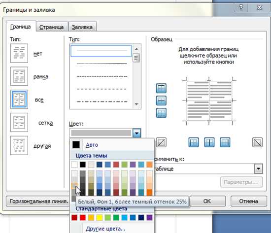 Клик правой кнопкой мыши внутри таблицы и выберите пункт “Границы и заливка”