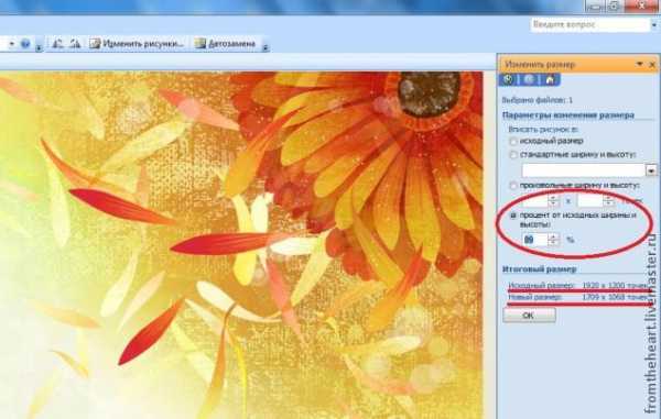 - Берем наш фон, копируем его в ячейку таблицы и выставляем размер изображения 5 на 9. Проследив при этом, чтоб не было галочки сохранения пропорций.