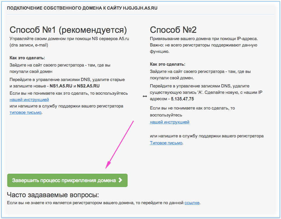 Если же домен не от провайдера, а от регистратора, следуйте плану: