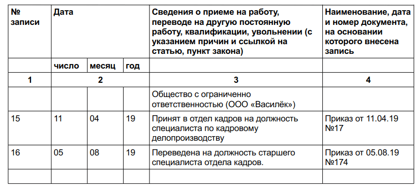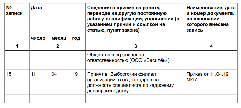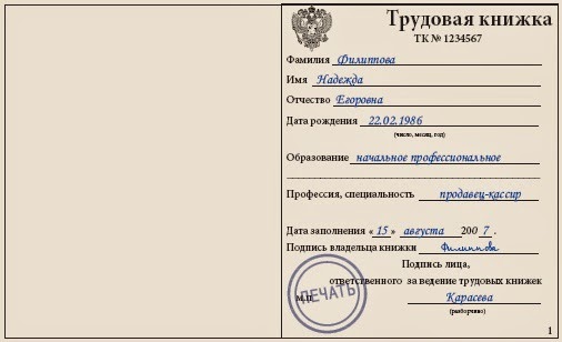 Учтите, что на иллюстрациях в статье изображены трудовые книжки, заполненные по старым правилам, но разница незначительная.