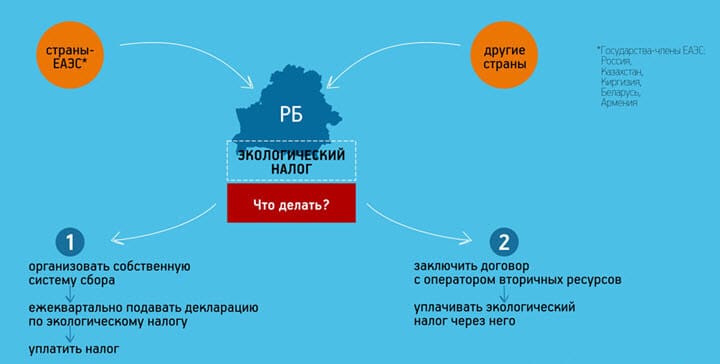 Заключить договор с ГУ “Оператор вторичных материальных ресурсов” об организации сбора, обезвреживания и (или) использования отходов товаров и упаковки.