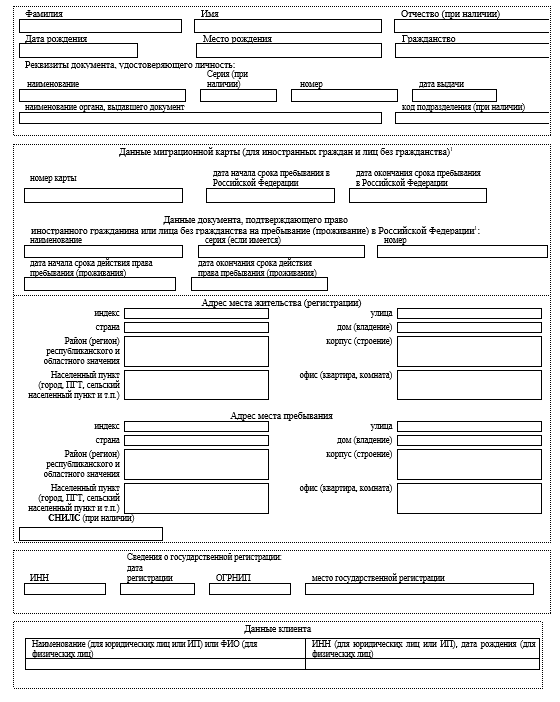 Форма Rekyc для физических лиц (кроме TASC)