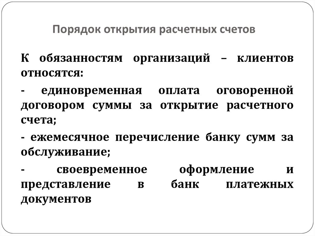 Порядок открытия расчетного счета в банке