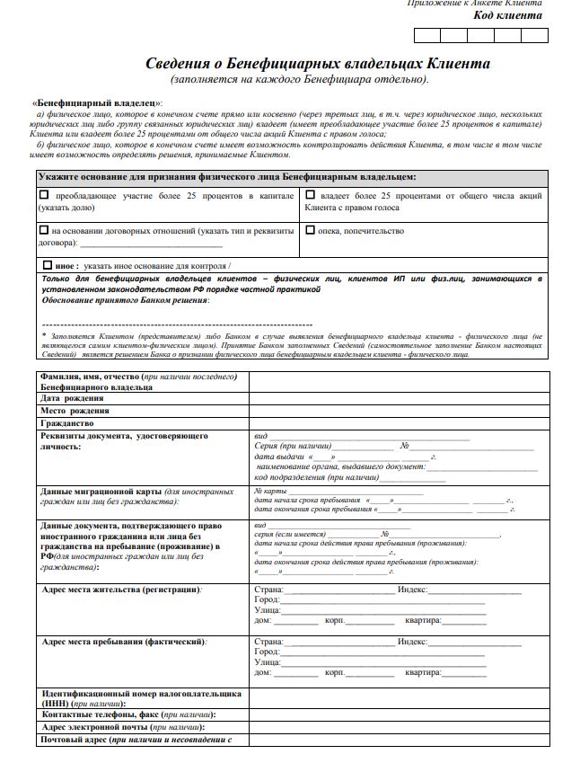 Форма KYC Паевого фонда