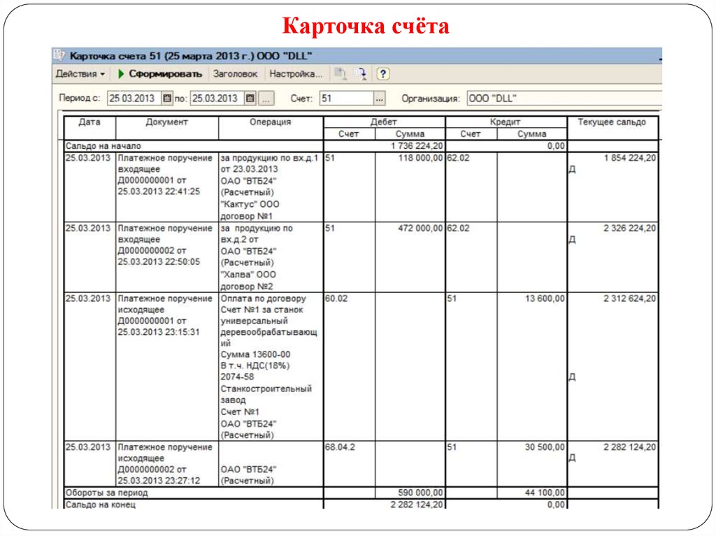 Отчет «Карточка счета» расположен в блоке «Стандартные отчета» раздела меню «Отчеты».