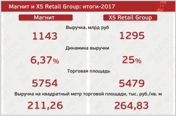 «Магнит» занимает лидирующее положение среди конкурентов по количеству действующих магазинов, и второе место по товарообороту после сети «Пятерочка».