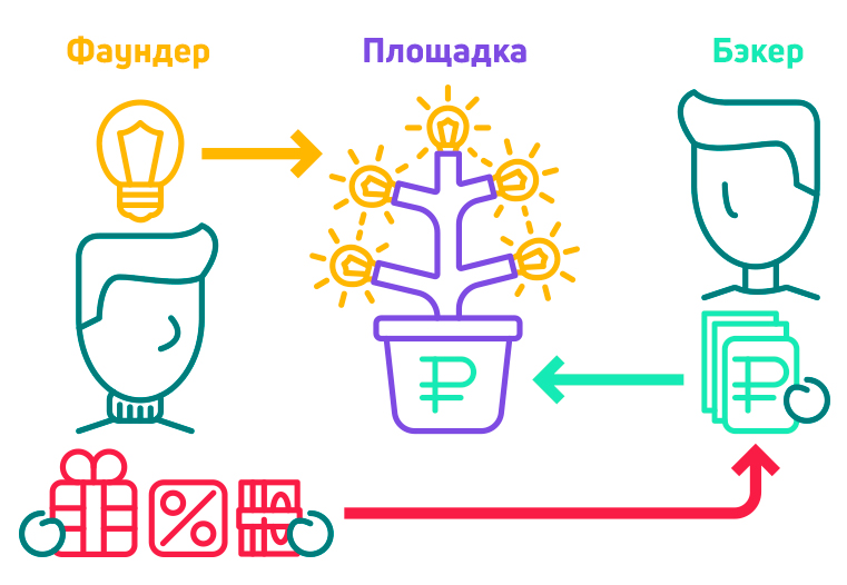 Краудфандинг. В обмен на поддержку проекта бекеры (спонсоры) могут рассчитывать на вознаграждения.