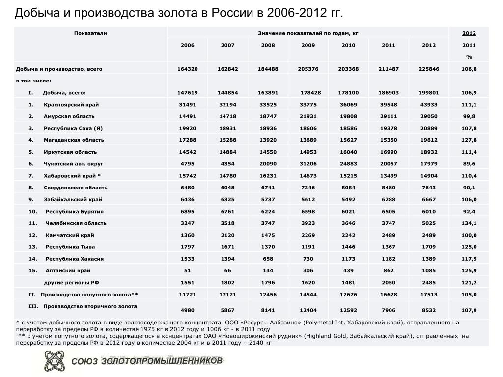Больше всего драгметалла получено на месторождении «Кызыл» (274 тыс. унций), также высокие результаты наблюдаются на месторождениях Албазино (190 тыс. унц.), Варваринское (157 тыс. унц.), Омолон (157 тыс.