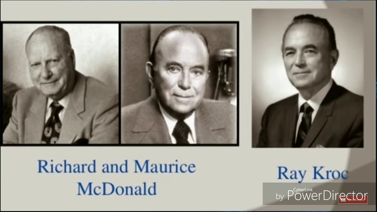 Во время посещения клиента в Сан-Бернардино, штат Калифорния, Рэй Крок обнаружил небольшой ресторан, которым управляют братья Дик и Мак Макдональды, и был ошеломлен эффективностью их работы. Братья Макдональды составили ограниченное меню, сконцентрировавшись всего на нескольких позициях — гамбургерах, картофеле фри и напитках, — что позволило им сосредоточиться на качестве и быстром обслуживании. Они искали нового франчайзингового агента, и Рэй Крок увидел возможность.