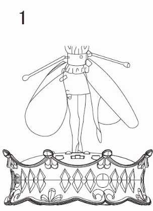 1. Установите фею на подставке(зарядное устройство). Установите переключатель ON/OFF на фее и зарядном устройстве в положение ON. Нажмите кнопку на зарядном устройстве и фея взлетит.