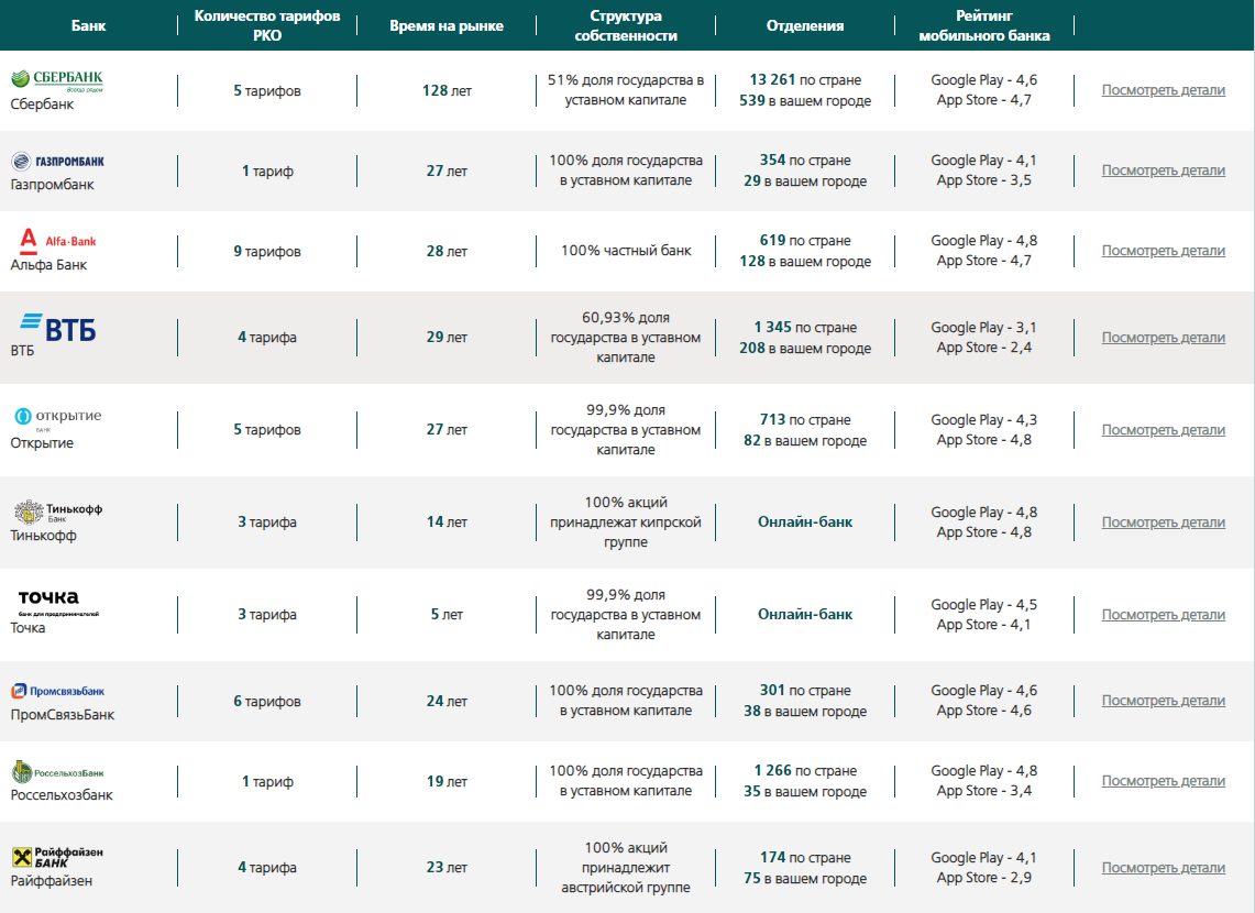 | 4 | ВТБ | Санкт-Петербург, ул. Большая Морская, 29 | (800) 100-24-24 | 51559 | |
