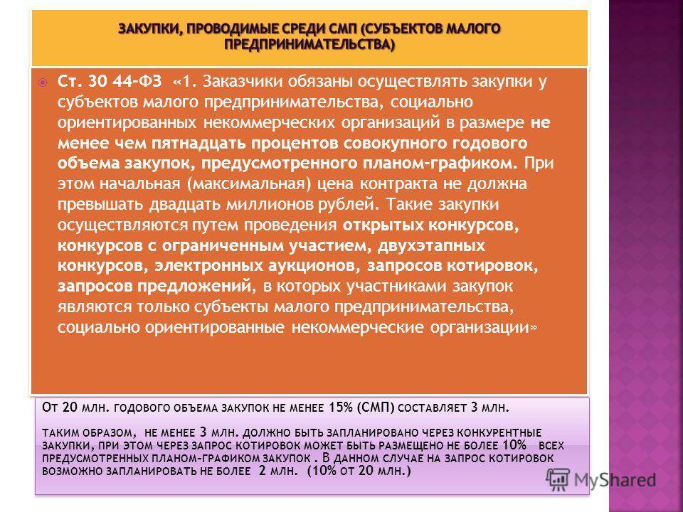Проведение торгов регулируется двумя Федеральными законами № 44-ФЗ (государственные и муниципальные закупки) и № 223-ФЗ (закупки другими видами юрлиц). В них установлен ряд преимуществ для представителей малого и среднего бизнеса: