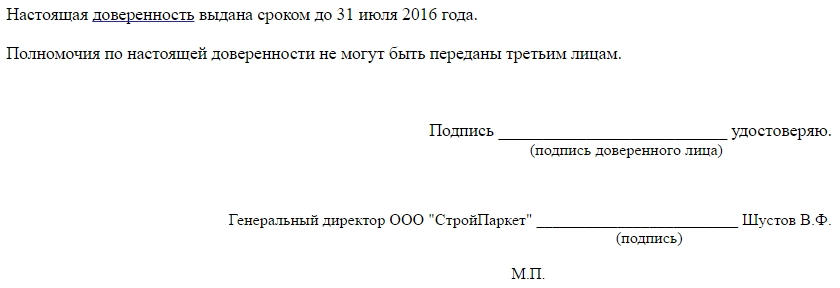 — Срок, на который выдана доверенность. Иначе доверенность будет действовать в течение года со дня её составления.