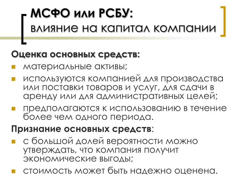 Вопрос 1. Руководство поставило задачу внедрения МСФО в нашей компании. Для этого мне, прежде всего, хотелось бы понять, в чем принципиальные отличия МСФО и РСБУ?