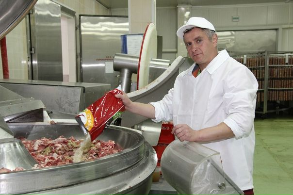Российские мясоперерабатывающие производства оснащены современным отечественным и импортным оборудованием: волчками, фаршемешалками, куттерами, шпигорезками, вакуумными шприцами, варочными котлами, термокамерами копчения, инъекторами, массажерами, слайсерами, вакуумными упаковщиками, клипсаторами.
