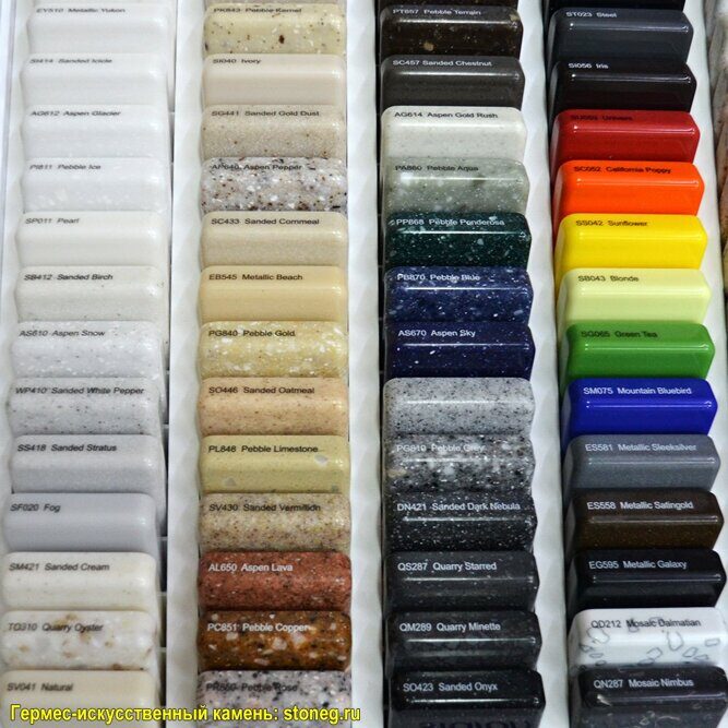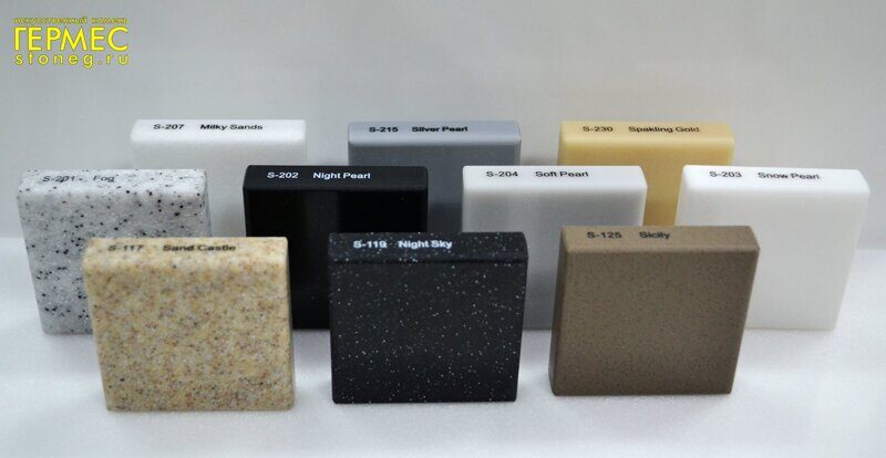 Образцы искусственного камня Corian®, Hanex®, Staron®, Hi-Macs®, Grandex®