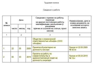 Запись в трудовой книжке о приеме на работу 2019 образец написания