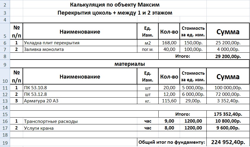 Рисунок 1. Образец сметы на косметический ремонт подъезда