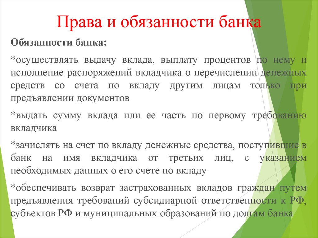 Центральный банк устанавливает обязательные экономические нормативы для микрокредитных организаций и ломбардов.О предстоящих изменениях экономических нормативов Центральный банк объявляет не позднее чем за один месяц.В случае нарушения банками и их филиалами банковского законодательства, устанавливаемых экономических нормативов Центральный банк имеет право взыскивать штраф до 0,1 процента от минимального размера уставного капитала либо ограничивать проведение отдельных операций на срок до шести месяцев.Если допущенные нарушения или совершаемые банком операции создали реальную угрозу интересам вкладчиков и кредиторов, Центральный банк вправе:взыскать с банков штраф не более одного процента от минимального размера уставного капитала;потребовать от банка осуществления мероприятий по финансовому оздоровлению банка, в том числе изменения структуры активов, снижения расходов банка и прекращения выплаты дивидендов акционерам, замены руководителей банка или филиала, в том числе руководителей и членов совета банка, реорганизации банка, ликвидации филиала; изменить для банка экономические нормативы на срок до шести месяцев;ввести запрет на осуществление банком отдельных банковских операций сроком до одного года, а также на открытие филиалов на этот же срок;принимать решения об установлении опеки над банком с наделением опекуна всеми полномочиями должностных лиц и акционеров банка на период, необходимый для финансового оздоровления или выполнения предписаний Центрального банка;отозвать лицензию на право осуществления банковских операций.