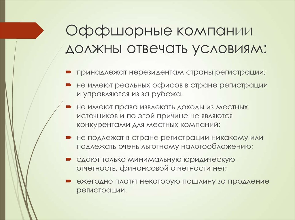 Отсюда – «оффшорной компанией» или, опять же, «оффшором» – часто называют юридическое лицо, зарегистрированное в государстве, являющемся оффшорной зоной.