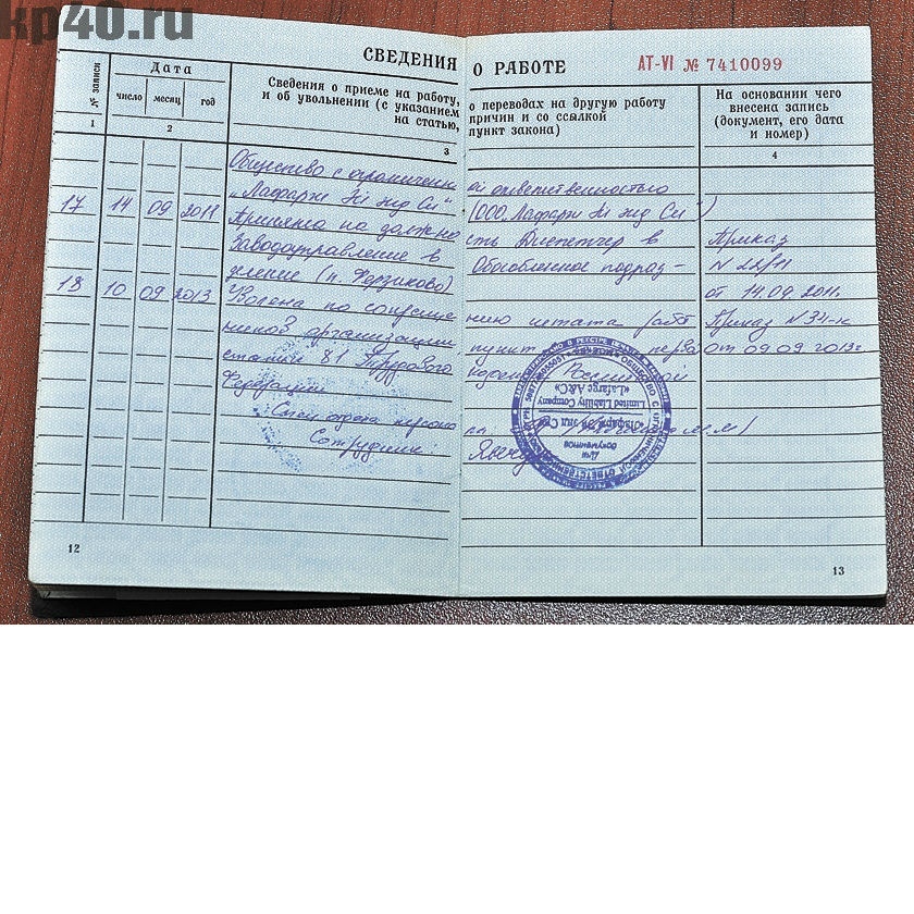 По сложившимся на практике правилам оттиск печати не должен скрывать личных подписей, а также важных реквизитов документа или сам текст. Печать должна немного захватывать лишь наименование должности. Но трудовая книжка имеет небольшой формат (по размеру трудовая книжка такая же, как общегражданский паспорт), и удачно разместить оттиск печати не всегда представляется возможным. Некоторые ставят печать справа, и потом она мешает прочитать реквизиты приказа об увольнении. Вполне возможно, при оформлении пенсии работники Пенсионного фонда России потребуют для подтверждения данного периода трудового стажа архивную справку, что бывает довольно затруднительно по прошествии времени.