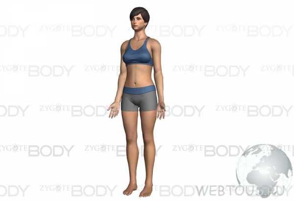 ZygoteBody в 3d режиме воссоздает тело человека (мужчины или женщины, можно задать в настройках) и его системы: пищеварительная, нервная, опорно-двигательная, сердечно-сосудистая и т.д. Изначально виртуальное тело представлено таким образом: