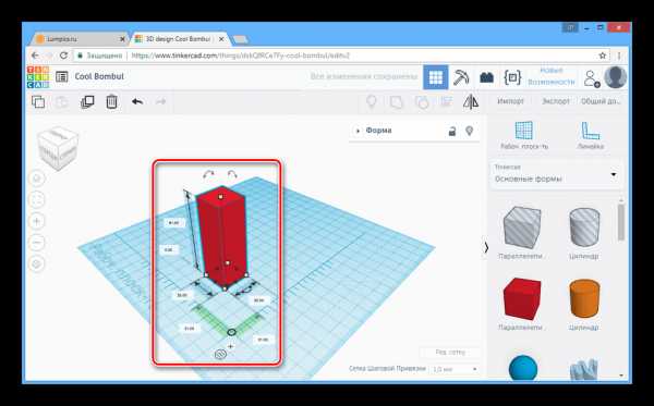 - Когда модель отобразится в основном окне редактора, у нее появятся дополнительные инструменты, используя которые фигуру можно перемещать или видоизменять.