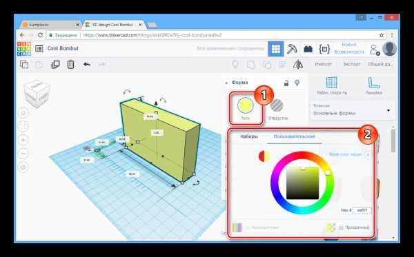 В блоке «Форма» вы можете установить основные параметры модели, что касается и ее цветовой гаммы. Допускается ручной выбор любого цвета из палитры, но текстуры использовать невозможно.