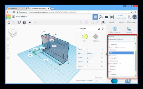 - Для создания каких-либо 3D-фигур используйте панель, размещенную в правой части страницы.