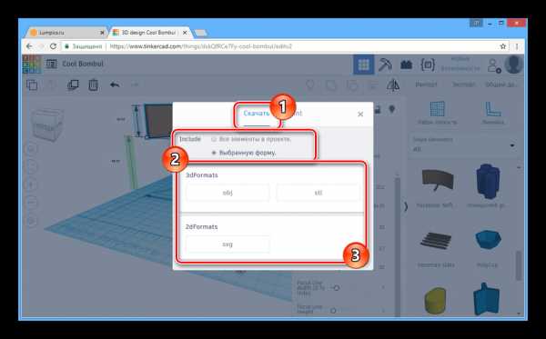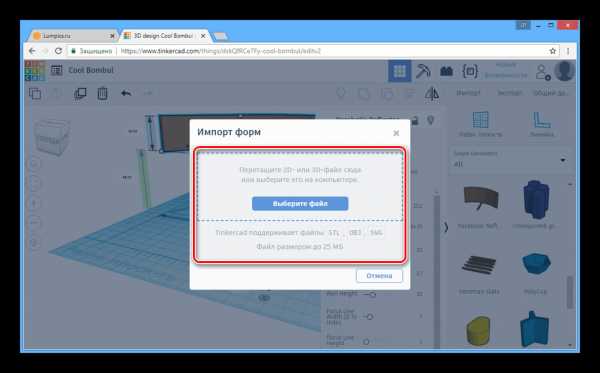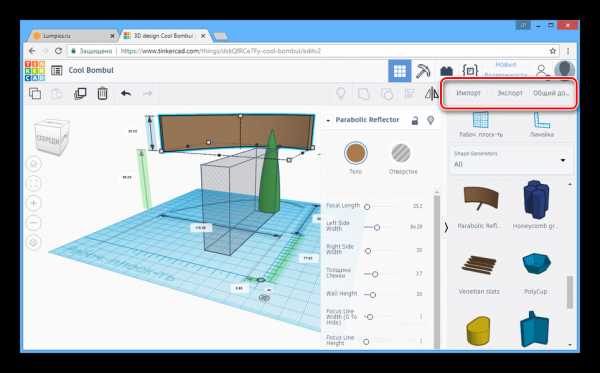 - По необходимости сервис позволяет не только экспортировать, но также импортировать различные модели, в том числе ранее созданные в Tinkercad.