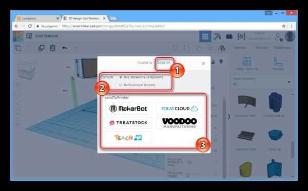 На странице «3dprint» вы можете прибегнуть к помощи одного из дополнительных сервисов, чтобы распечатать созданный проект.
