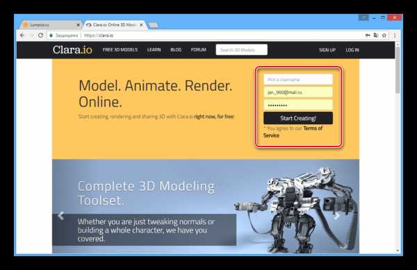 - Чтобы перейти к 3D-моделированию с помощью этого сайта, необходимо пройти процедуру регистрации или авторизации.