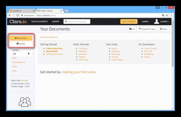 - После завершения регистрации вы будете перенаправлены в личный кабинет, откуда можно перейти к загрузке модели с компьютера или созданию новой сцены.