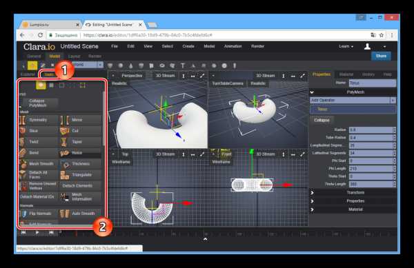 Данный онлайн-сервис, в отличие от большинства аналогов, обладает максимально упрощенным интерфейсом, во время освоения которого у вас вряд ли возникнут вопросы. Более того, прямо на сайте можно пройти полностью бесплатное обучение основам работы в рассматриваемом 3D-редакторе.