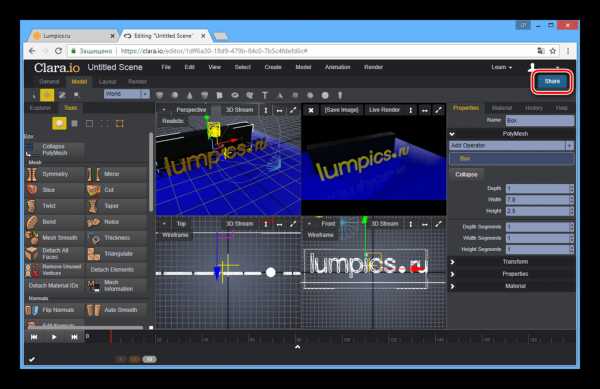 - В правой части редактора нажмите кнопку «Share», чтобы поделиться моделью.
