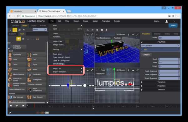 - Откройте меню «File» и выберите из списка один из вариантов экспорта: