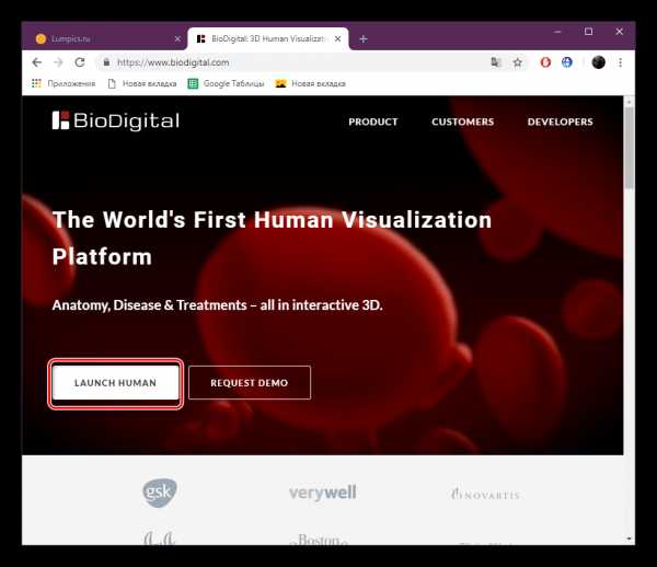 - Перейдите на главную страницу BioDigital, воспользовавшись указанной выше ссылкой, а затем щелкните на «Launch Human».