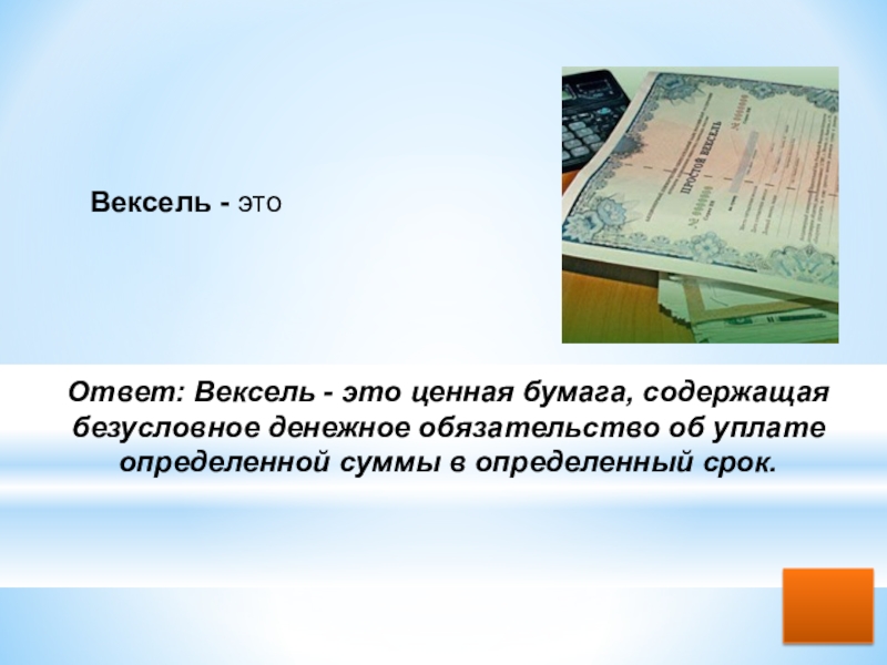 В деле в адвокатуре ответчик дал вексель о выплате истцу денежной суммы в определенный день или ранее.