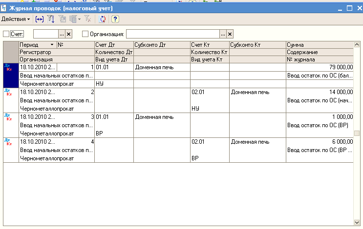 Ввод начальных остатков