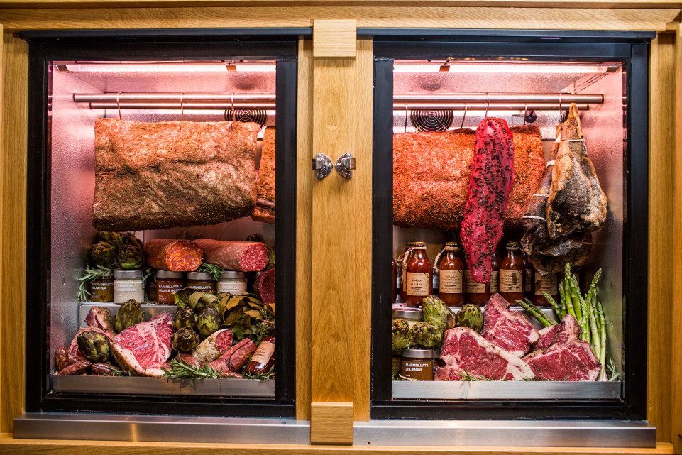 Отрубы можно подвесить на вешала или же равномерно распределить на полках. При размещении мяса на полках в виде отдельных кусков уделите внимание на внешний слой жира, который предотвращает потери в весе. По возможности выбирайте мясо на кости. Оптимальный вес куска – 2-4 кг. В шкафах MEATAGE можно выдерживать не только говядину, некоторые клиенты выдерживают свинину, салями, ветчину, сосиски, колбасы, сыр.