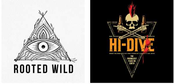 Хотя мягкие и скругленные края, круги, эллипсы и овалы часто используются для более безопасных компаний, эти формы также имеют историю использования для значков и марок, которые существуют в отраслях с традиционными, аутентичными или даже старинными качествами. В приведенных выше примерах показано, как эти формы могут использоваться для создания логотипа значка или штампа.