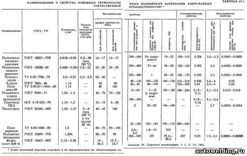 Таким образом, пластмассы в большинстве случаев являются многокомпонентными смесями и композиционными материалами, у которых технологические свойства, в том числе и свариваемость, в основном определяются свойствами полимера.